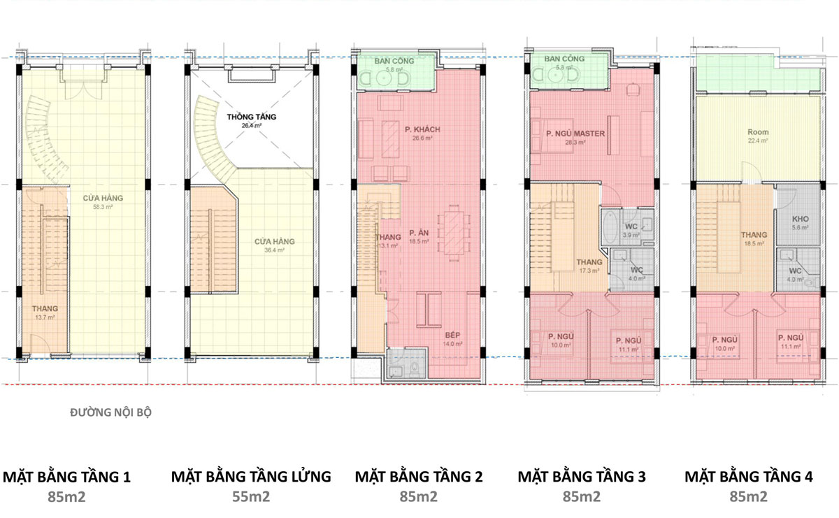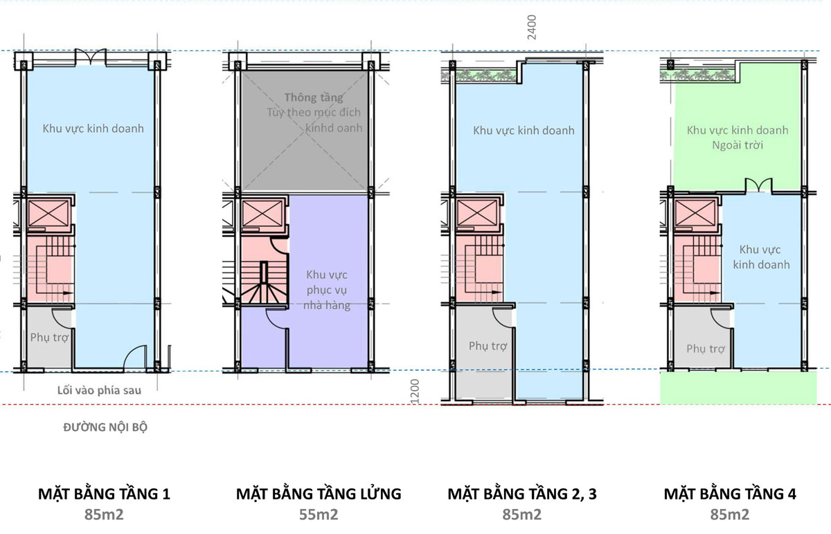 • Phù hợp: Mục tiêu kinh doanh tầng 1 và tầng lửng, nhà ở tầng 2 trở lên
