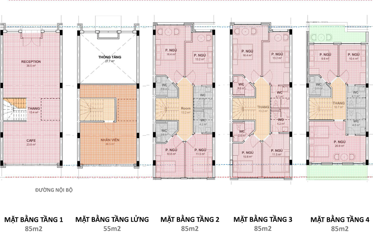 • Mặt bằng : Thiết kế bố trí tối đa số phòng ngủ nhỏ. Có thể lắp đặt thang máy đối với nhà 4 tầng.